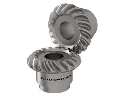 A spiral bevel gear is a bevel gear with helical teeth. The main application of this is in a vehicle differential, where the direction of drive from the drive shaft must be turned 90 degrees to drive the wheels.